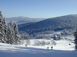 Aktivitäten im Herbst und Winter Der goldene Herbst ist der „Indian Summer“ des Bayerischen Waldes, bietet viele schöne Wanderwege. Zahlreiche Einkehrmöglichkeiten laden zum Rasten und Träumen ein. Im Winter bietet der Bayer. Wald herrliches Skivergnügen, ob für ungebübte Skifahrer oder für Ski-Profis. Die Skigebiete Großer Arber, Eck und Hoher Bogen bieten mit ihren Liften und Gondelbahnen, Abfahrten verschiedener Schwierigkeitsgrade. Langlaufloipen laden zu traumhaften Touren durch verschneite Wiesen und Wälder ein. Wanderungen mit und ohne Schneeschuhe, durch tief verschneite Wiesen und Wälder in einem wunderbaren, winterlichen Panorama werden zu einem unvergesslichen Erlebnis für jung und alt. …. oder eine Pferdeschlittenfahrt – eingehüllt in warme Decken – um die verschneiten Ortschaften, lassen die Herzen höher schlagen.