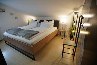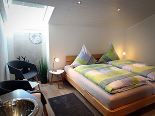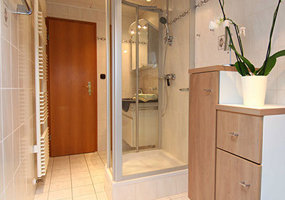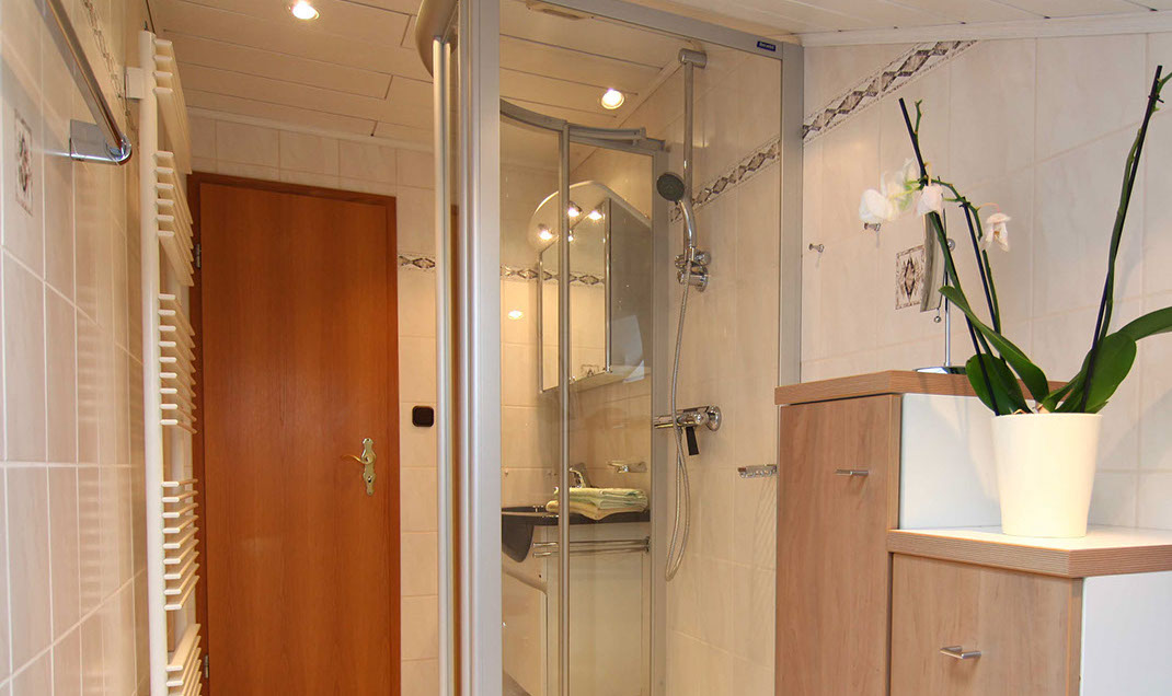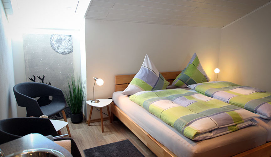 Unser Appartement Sternenhimmel Ein romantisches Appartement unter dem Dach bieten wir unseren Gästen in der oberen Etage des Hauses an. Ein großzügiger Balkon einschl. Sitzgarnitur gehört dazu. Die Wohnung verfügt über eine schöne, gemütliche Wohnküche mit Zugang zum Balkon, zwei Doppelschlafzimmer sowie ein schnuckeliges Badezimmer in der Mansarde mit Dusche und WC. Viele Extras wie Tischspülmaschine, Kaffeemaschine und kleinere Elektrogeräte sowie Flat-Screen TV sind selbstverständlich vorhanden. Preise Appartement Sternenhimmel 2 Komfort-Doppelzimmer, gemütliche Wohnküche, Badezimmer mit Dusche und WC, Fön, Sat-TV, Radio, großzügiger Balkon mit Gartenmöbeln Grundpreise ab der 6. Übernachtung: Bei 1 Person 70,00 € bei 2 Personen 90,00 € bei 3 Personen 110,00 € bei 4Personen 120,00 € Aufpreise zwischen der 3. und 5. Übernachtung jeweils 10,00 €. Maximalbelegung: 4 Personen Kurtaxe pro Person ab 17 Jahre 1,30 Euro am Tag Wissenswertes zum Appartement Im Preis inbegriffen sind: frische Bade- und Handtücher, Bettwäsche und Tischwäsche Preisunterschiede ergeben sich durch die Anzahl der Gäste. Wir sind ein tierliebes Gästehaus und freuen uns auf jeden Vierbeiner. Bitte verstehen Sie aber, dass wir für die gründliche Reinigung eine Unkostenpauschale im Wert von 5,00 Euro pro Tag verlangen müssen. Stornierung – ist ärgerlich für beide Seiten; allerdings kann jedem etwas dazwischen kommen. Unsere Bitte: Informieren Sie uns rechtzeitig. Wir bitten Sie jedoch um Verständnis, dass eine kostenfreie Stornierung Ihrer Reservierung nur bis 2 Wochen vor Ihrem Anreisetermin möglich ist. Liegt die Stornozeit unter der genannten Frist und kann das Appartement nicht anderweitig weitervermietet werden, müssen wir den Ausfall mit 50% berechnen. Gerne können Sie bei uns Gutscheine z.B. über einen Aufenthalt oder über einen bestimmten Wert erwerben. (Gutscheine können nicht mehr ausbezahlt werden.) Nutzung einer Waschmaschine und Trockners auf Anfrage, Nichtraucherwohnungen An- und Abreise Da jeder Gast gerne eine saubere Wohnung vorfinden möchte, bitten wir die Wohnungen jeweils bis 11.00 Uhr zu verlassen. Anreise ab 15.00 Uhr.